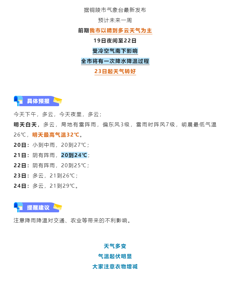 銅陵發布:20℃!冷空氣影響,銅陵本周……